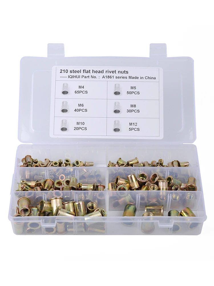 210 Boxed Color Steel Rivet Nuts M4/5/6/8/10/12 Combination Rivet Nut Set
